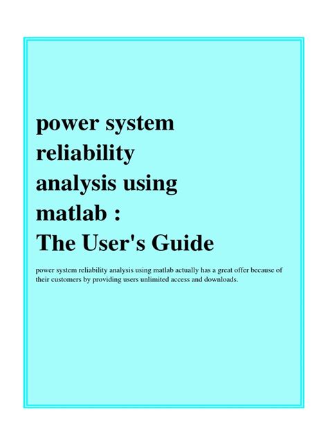 File Name: Power System Reliability Analysis Using Matlab.pdf Size: 6415 KB Type: PDF, ePub, eBook |