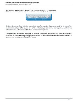 In order to read or download Solution Manual Advanced Accounting 2 Guerrero 2011 Book Mediafile Free File Sharing ebook, you need to create a FREE account.