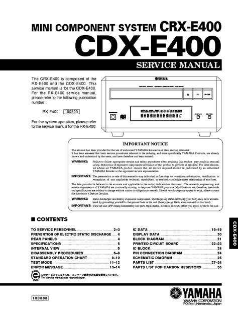In order to read or download Yamaha Cdx E400 Mini Component System Service Manual ebook, you need to create a FREE account.